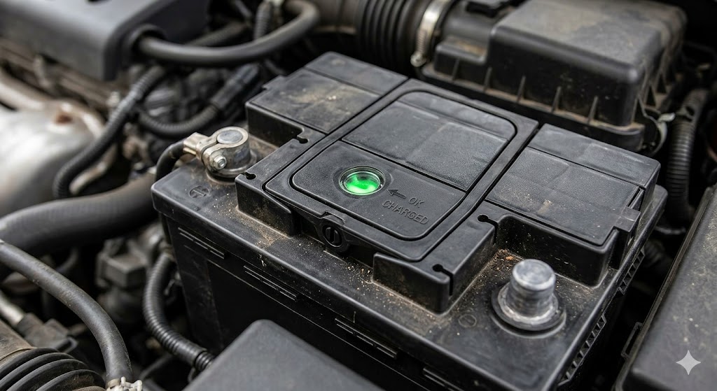 많은 분이 배터리 상단의 점검창(인디케이터)이 녹색이면 정상이라고 생각합니다. 제 차도 녹색이었습니다. 하지만 기사님이 배터리 테스터기로 찍어보니 결과는 '교체 필요'였습니다.